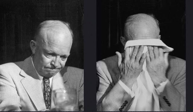 That is what I see in this picture of Eisenhower. A strong, stoic man who - even him - can be buffeted by a wave of remembrance of what he and others did and survived in recent memory.