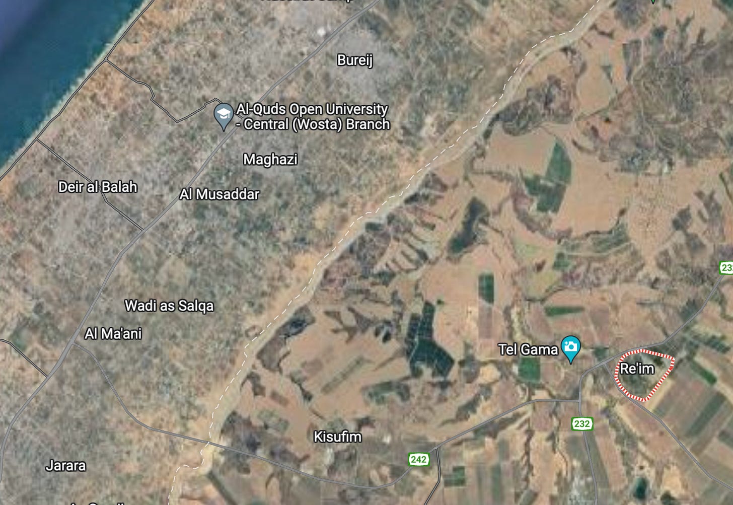 Re’im. It is just 3.5 miles as the rocket flies from the Gaza border. The difference is so stark, all you need is an overhead;