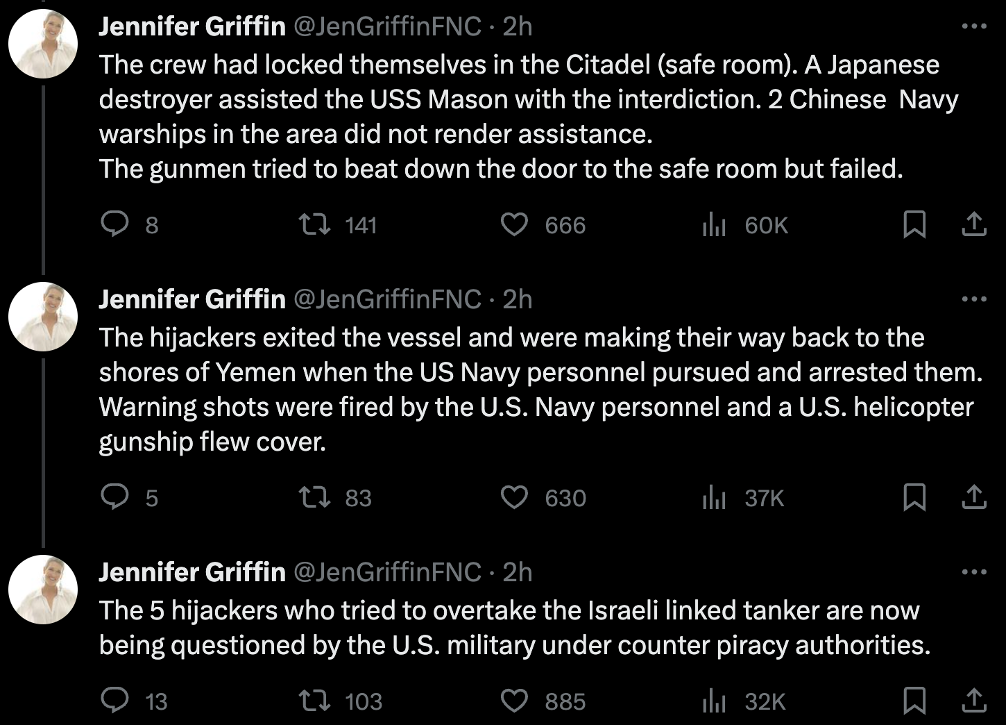 Maybe at some point, probably not during this regime, we're going to have to send some ordinance downrange into Yemen to stop this stuff. I still think pirates should be hung.