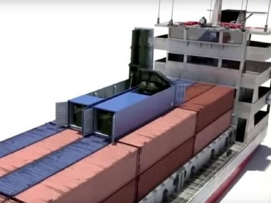 Part of the concept is to be a “loyal wingman” type addition to their frigates, but let’s not focus on that. Let’s focus on the greatest invention since the Bailey Bridge, the shipping container.