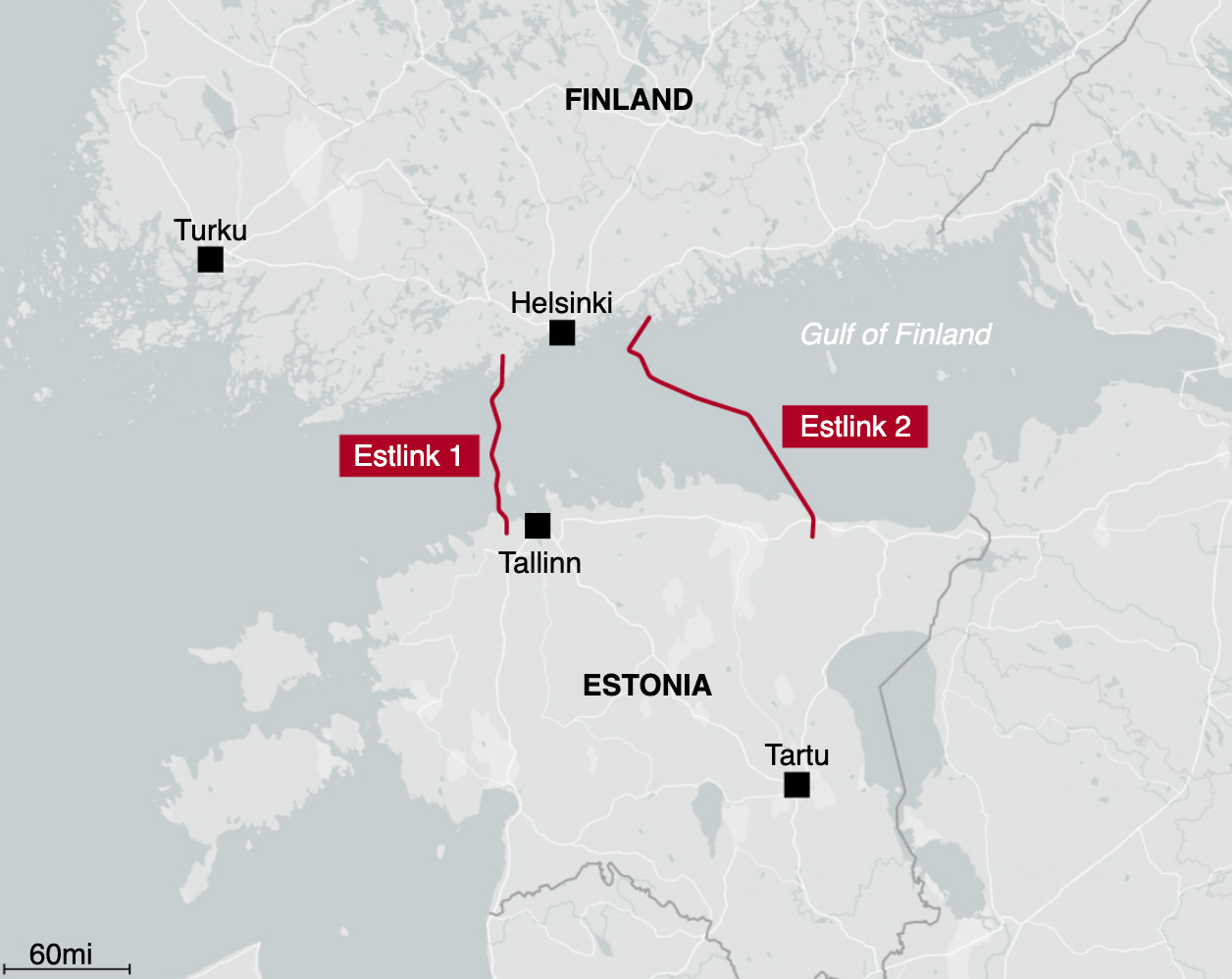 The latest incident cut the electricity connection on Estlink 2 between EU and NATO states Finland and Estonia on December 25.