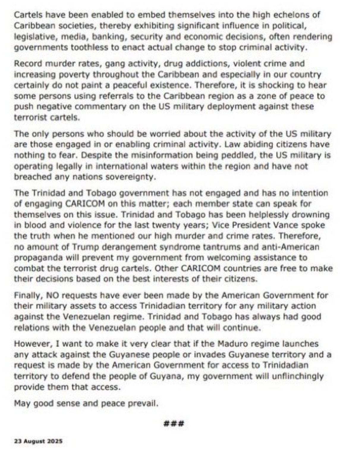 For months a JOINT base in Guyana would be a great idea. Bracketing the Caribbean with JOINT bases is a good idea. Guyana could sure use the help, and SECSTATE has already signed a mutual support agreements with them.