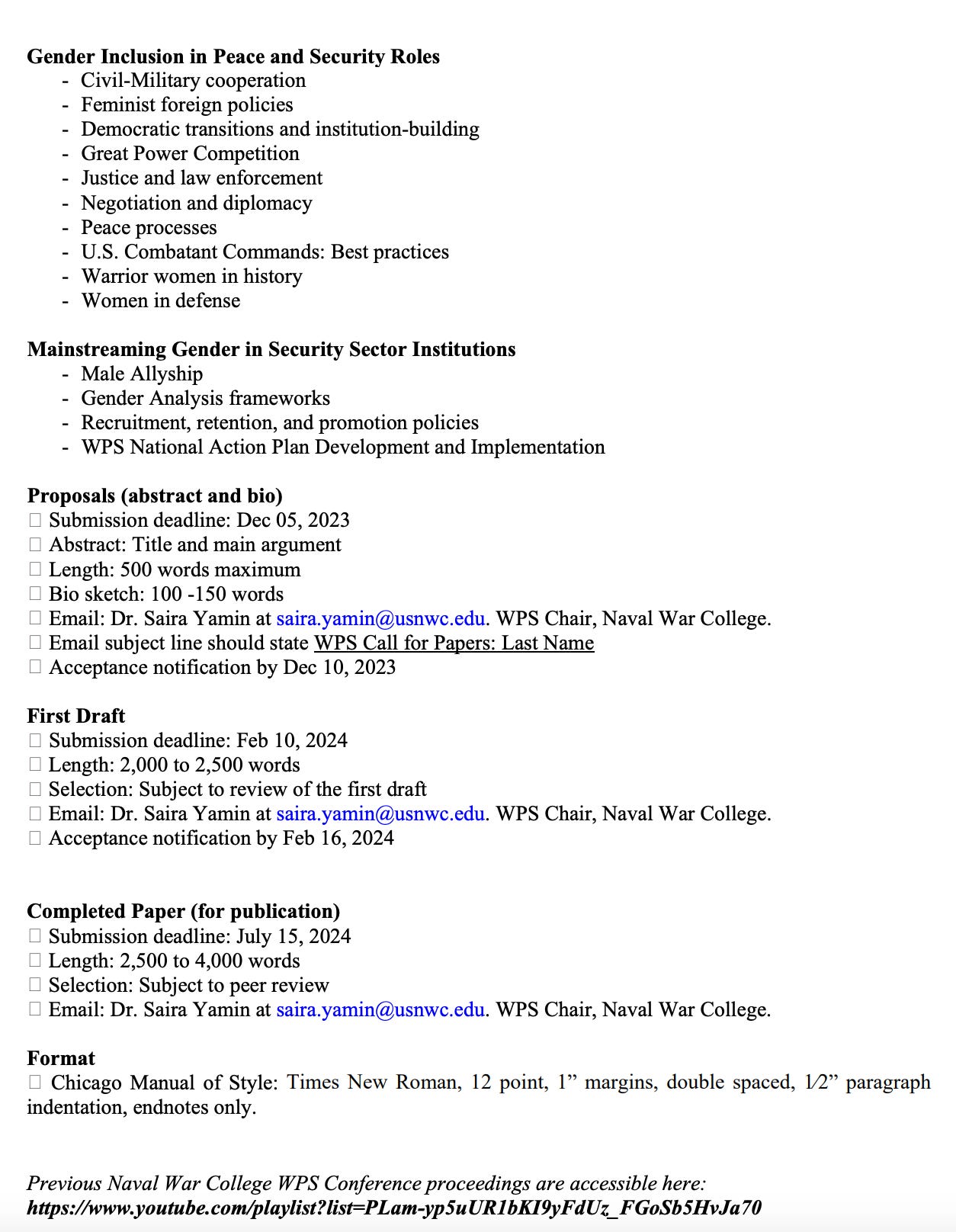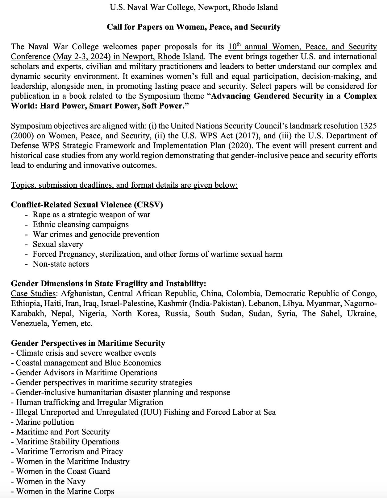 I think well meaning people can - and should - discuss if this dedication of resources are the highest and best use of a naval war college. I know The Party only allows praise, but everyone should ponder this on their own. Let’s look at the Call for Papers for the next conference and again, ask yourself that even if Gender Studies is a valid area of study, does it really need to be emmeshed at NWC?