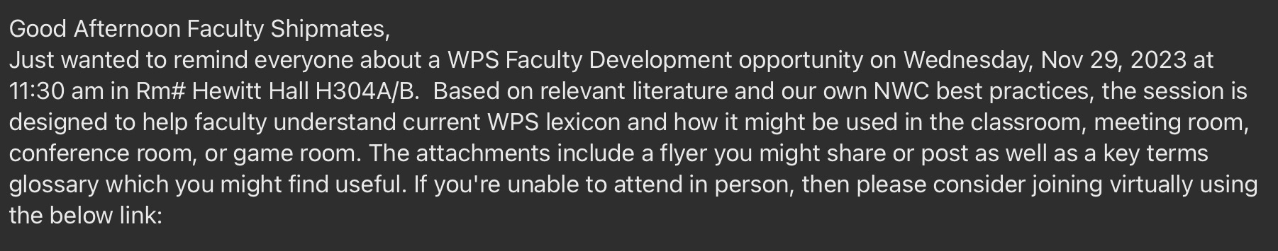 If someone is getting pushback on integrating WPS in the classroom, a visiting professor who just finished up her PhD, working from the “Teaching Excellence Center” (who BTW has some curious views on the events following the slaughter of October 7th), can help you with that;
