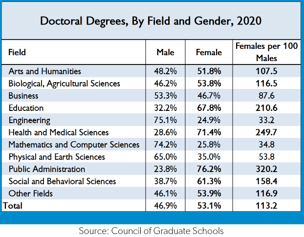 Are fields such as the author’s in education also suffering from “systemic discriminatory practices?” How about health and medical sciences? Lawdy … look at the sexists in public administrations!
