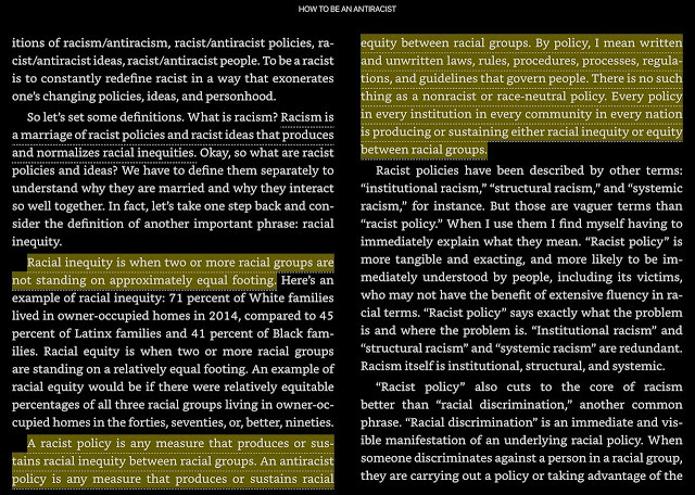 For those who have not read his book, let me pull out how Ibram X. Kendi defines things in his book, "How to be an Antiracist," the book in question.