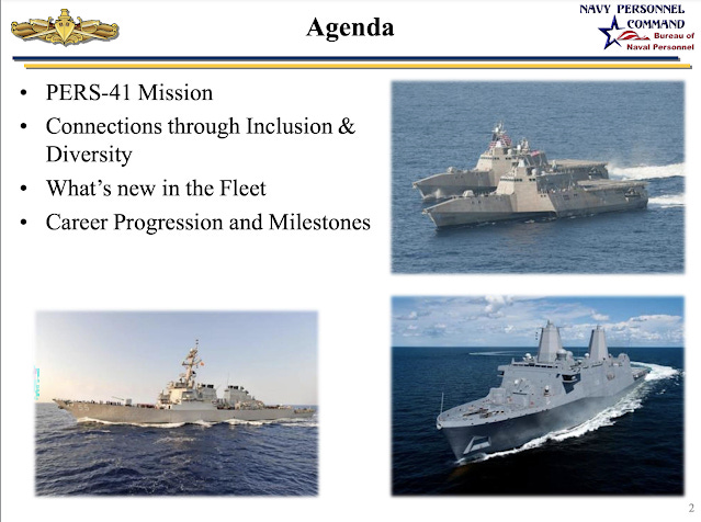So, PERS-41, the Director of Surface Officer Assignments, is coming to give everyone a brief. Great! For you career minded folks who want to see what is expected of you, there is no better source.