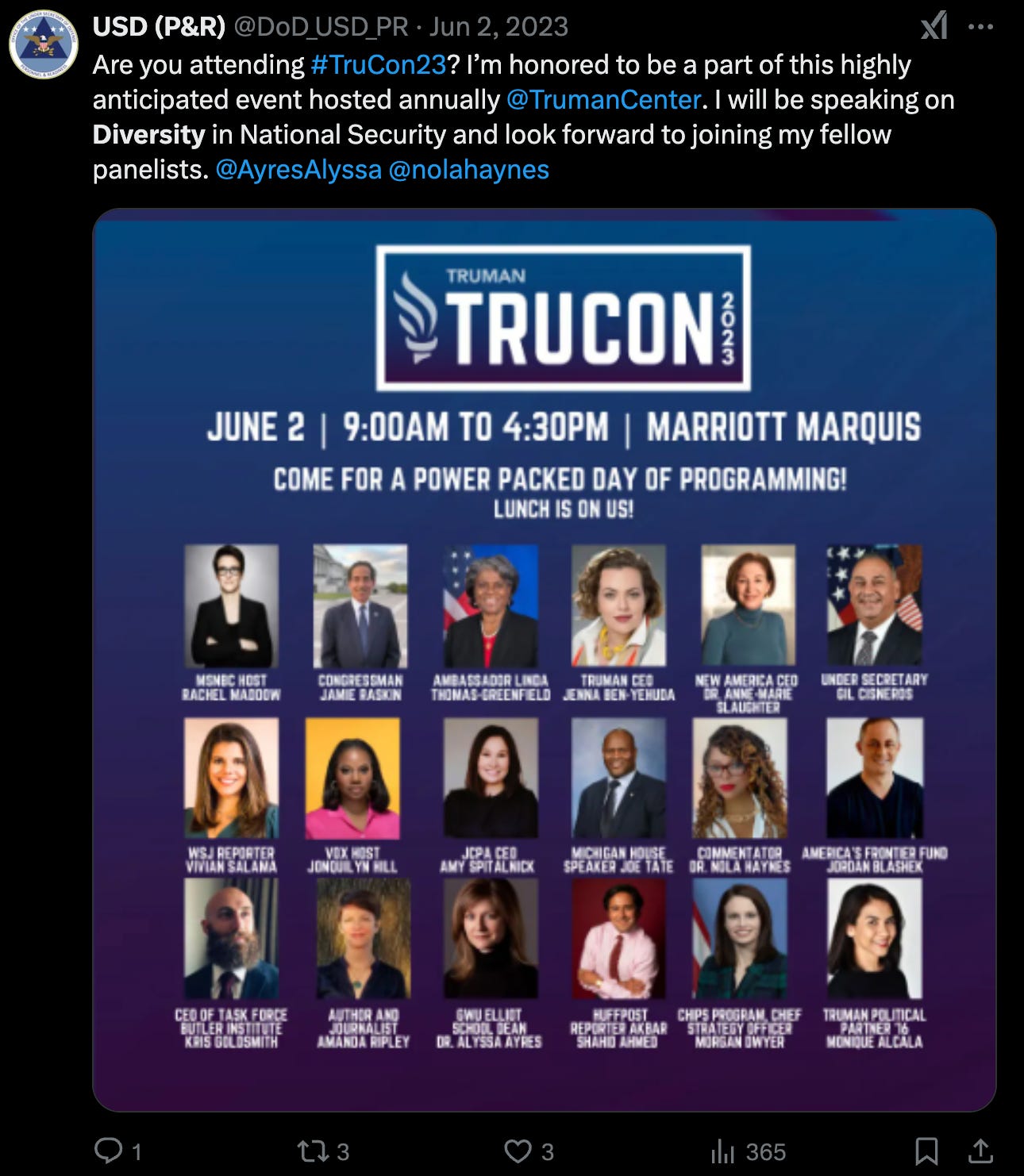 This is the new acting Under Secretary of Defense for Personnel & Readiness (USD P&R) Darin Selnick on Wednesday afternoon: