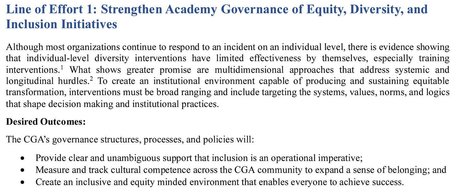 It has all the problems we’ve covered for almost two decades of DivThu, but I’m just going to pick the openings of each of their four lines of effort so you can get an idea of the absolute intellectual rot our elected representatives have allowed to take root.