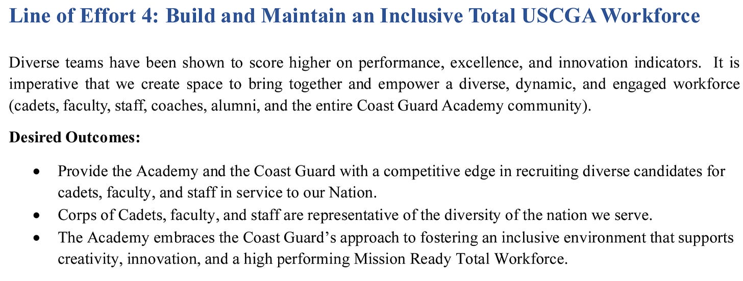 At one time the USCG Academy was a rare light where everyone was on an equal footing. There was no discrimination based on race, creed, color, or national origin.