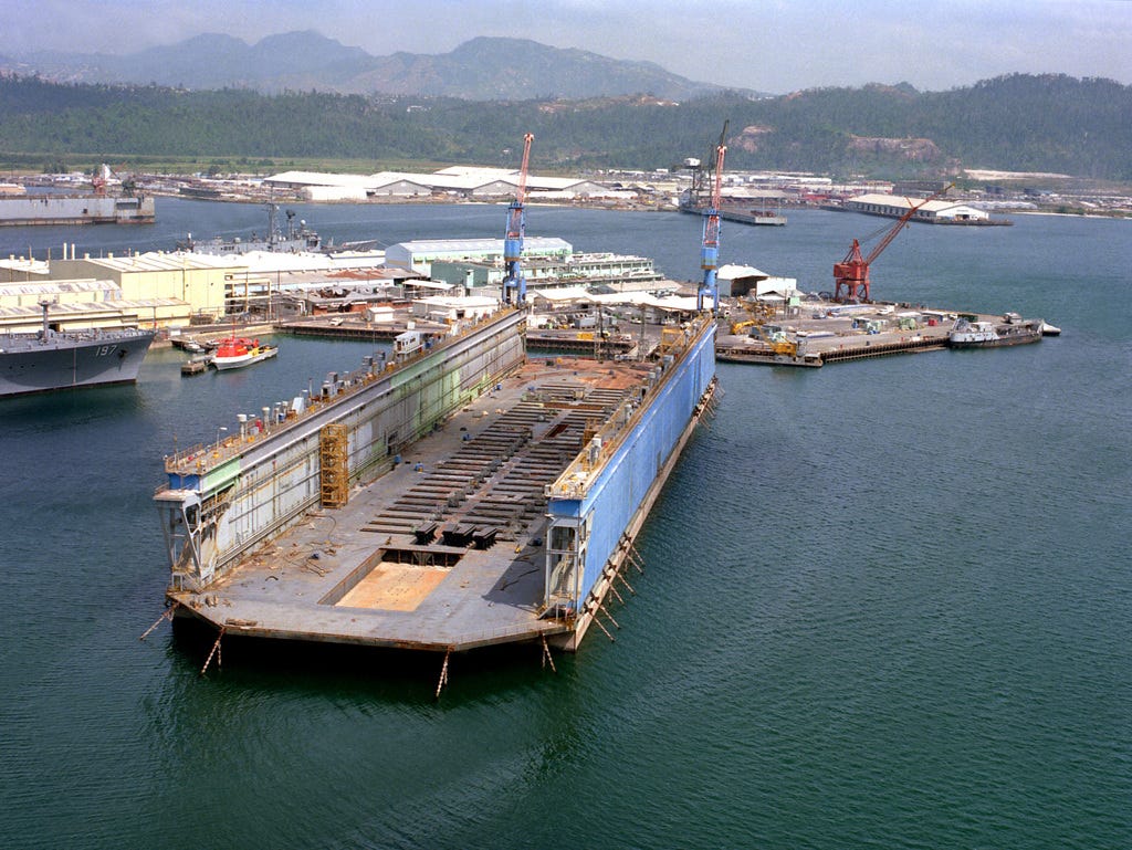 Guam’s two aged dry docks are gone. The World War II-era floating dry dock Richland (YFD-64) was sold off in 2016 to a Philippine maritime service provider. The Machinist (AFDB-8), a large auxiliary floating dry dock known locally as the “Big Blue,” was a relatively young platform, delivered to the United States in 1980. Damaged after a 2011 hurricane, the dry dock was sent to China for modernization in 2016, and is, apparently, still there.
