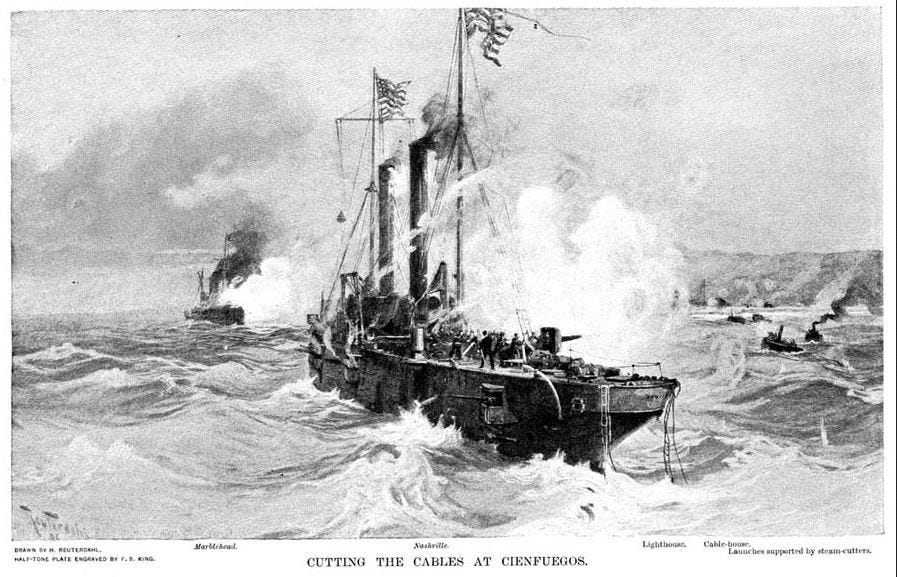 The naval force operating on the south coast of Cuba in the early part of May, at the time of the cutting of the cables at Cienfuegos, was composed of the cruiser Marblehead, the gunboat Nashville, the converted yacht Eagle, the revenue cutter Windom, and the collier Saturn, at that time forming the fourth division of the fleet, under the immediate command of Commander B. H. McCalla, U. S. N., who flew the senior officer's pennant on board the Marblehead.