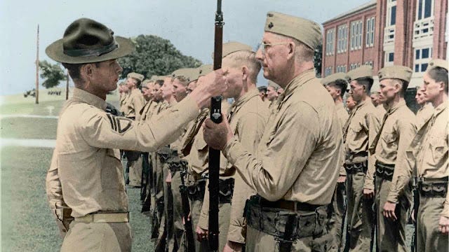 Initially, Douglas was assigned to the personnel classification section of Parris Island after becoming a Marine, but he was not content with the idea of writing training manuals for the rest of the war, so with the help of his good friend Fred Knox, who was serving as Navy Secretary, Douglas became an infantry officer.