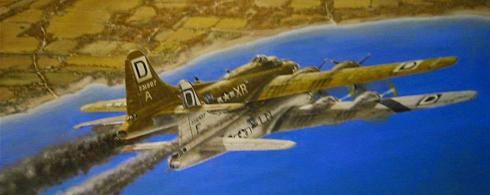 Washington opened the escape hatch and'saw the B-17 hanging there with three engines churning and one feathered. Rojohn and Leek banked to the left and headed south toward land.'