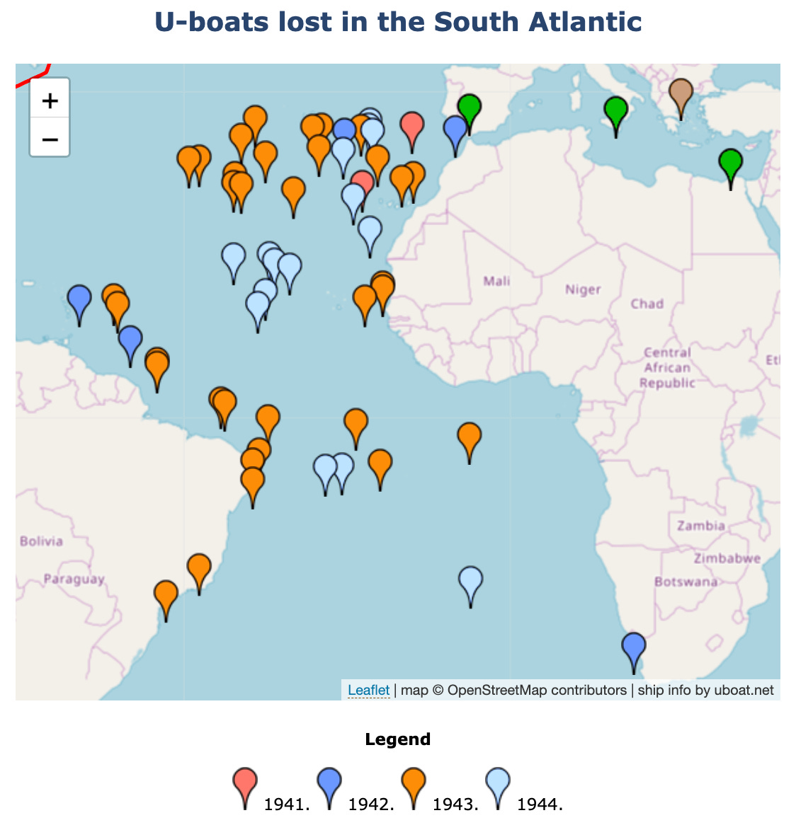 Here’s a map where U-boats were sunk, and by whom.