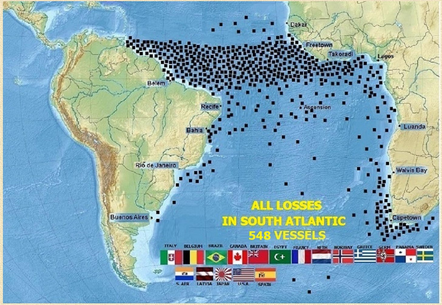 From Trinidad to South Africa, a lot of allied shipping was lost.