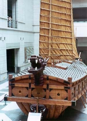 He also built something called "Turtle Ships" which sound kind of stupid and fruity but were actually awesome. Turtle Ships were large, fast-moving warships with reinforced metal plating completely covering the top deck to protect the sailors from enemy arrows and gunfire. The plates also had big-ass steel spikes sticking out of them so if any ninjas tried to fly on board they'd get impaled like when you knock Scorpion or Sub-Zero off the bridge level in Mortal Kombat. It carried about 30 guns, and the front of it was shaped like a badass dragon that shot a cannon out of it's mouth, had a smokescreen that came out of it's nose, and could be used as a battering ram to smash enemy ships into driftwood. Yi used the Turtle Ships to barrel through the enemy lines, blast everything they came across on either side and then ram the shit out of the enemy flagship, sinking it and drowning the Japanese commanders. Plus it looked fucking badass and intimidated the shit out of people: