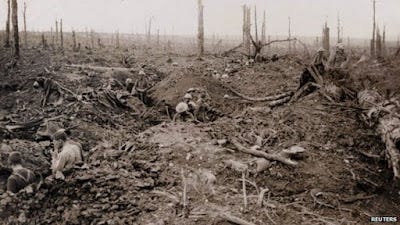 Take some time to follow the links above and read up on this little snapshot of the sacrifice from WWI years before the USA threw its hat in the ring - especially this one about what a walk in the woods is like today.