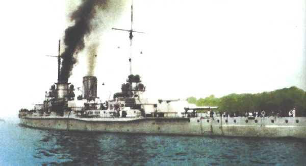 Goeben arrived in Turkish waters on 10th August 1914, served under the Turkish flag with her German officers and crew from 16th August, and officially transferred to Turkey in November 1914, although still mainly German manned and controlled. On the 29th October 1914, 'Goeben' and light cruiser 'Breslau' (see below) took part with Turkish forces in bombardments and raids on Russian Black Sea ports and shipping before the formal declaration of war between Turkey and Russia.
