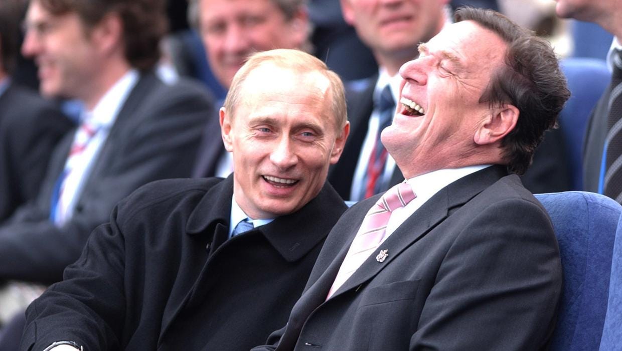 It is helpful to note that the whole project to get Germany hooked on Russian gas - in its final form as Nord Stream 2 - was led by the previous SPD Chancellor of Germany and this friend the former East German Stasi spy. If you don't know that, look it up.