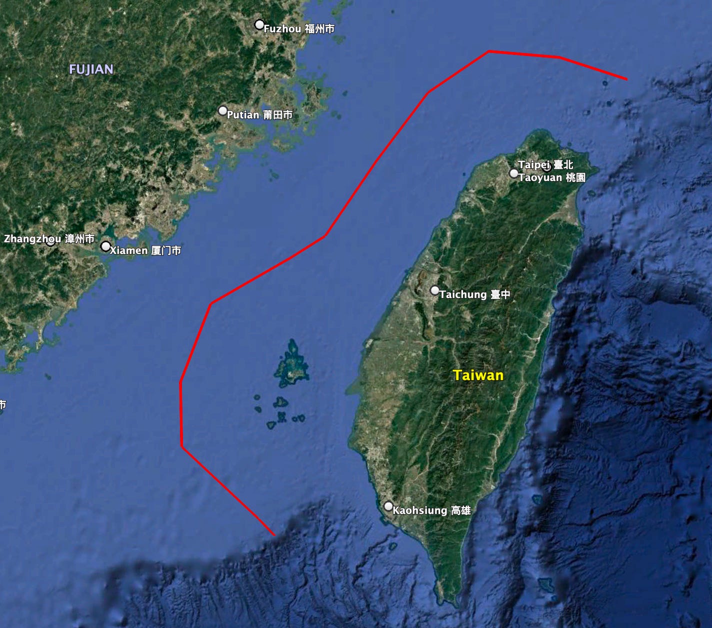 That red line is 344 nautical miles long. Depth 500: feet at the end of the lines (that leads to deep water where thar be SSN dragons), but the majority water depth is 100-200’ for most of the Taiwan Strait—a fertile field for sowing mines.
