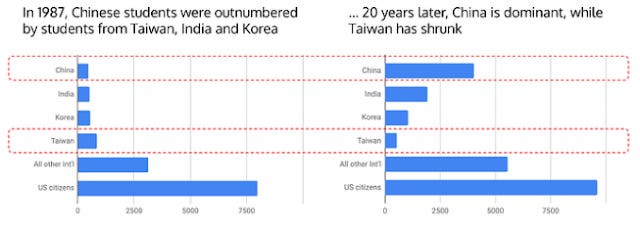 Anyone who, like your humble blogg'r, has kids and relatives of college age whose graduation ceremonies you attend can tell, PRC passport holders are taking up a HUGE portion of available slots. In a highly competitive environment, the difference between getting a spot or not in highly competitive programs at our top universities is a matter of small degrees. For each PRC national getting a PhD in chemical engineering at a top tier university, that is an American citizen - or the citizen of an allied nation - who is not.