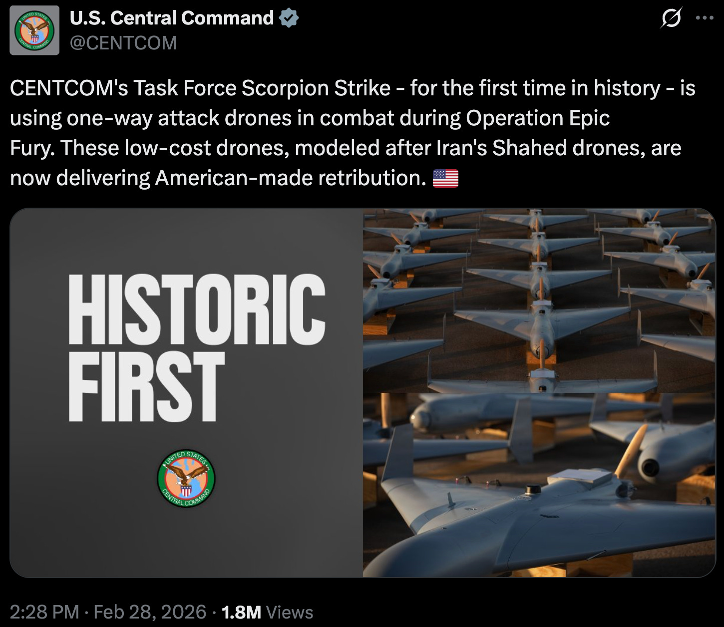 It is D+3, and there is one part of Operation Epic Fury that keeps popping up to top-of-mind for me, the Low-cost Unmanned Combat Attack System (LUCAS).