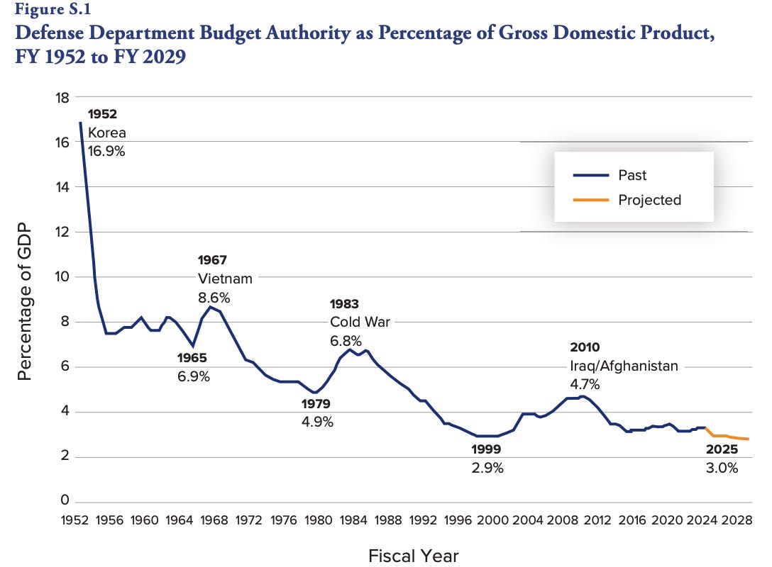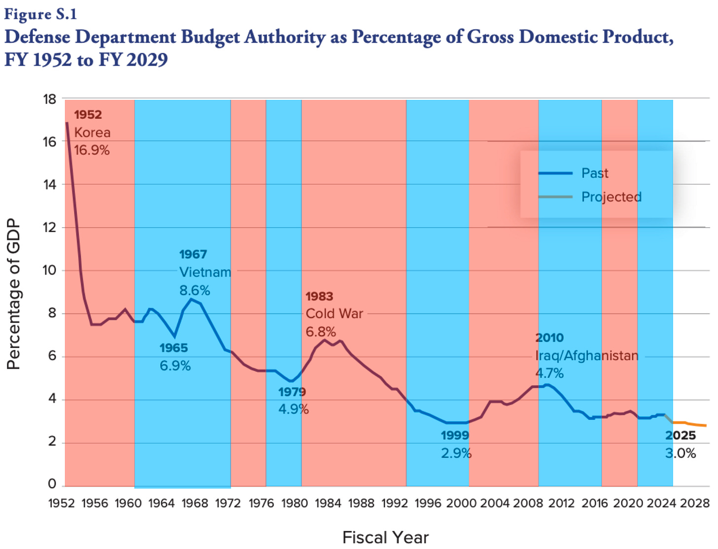 – Given the severity of the threats, the FY 2027 and later budgets for all elements of national power will require spending that puts defense and other components of national security on a glide path to support efforts commensurate with the U.S. national effort seen during the Cold War.