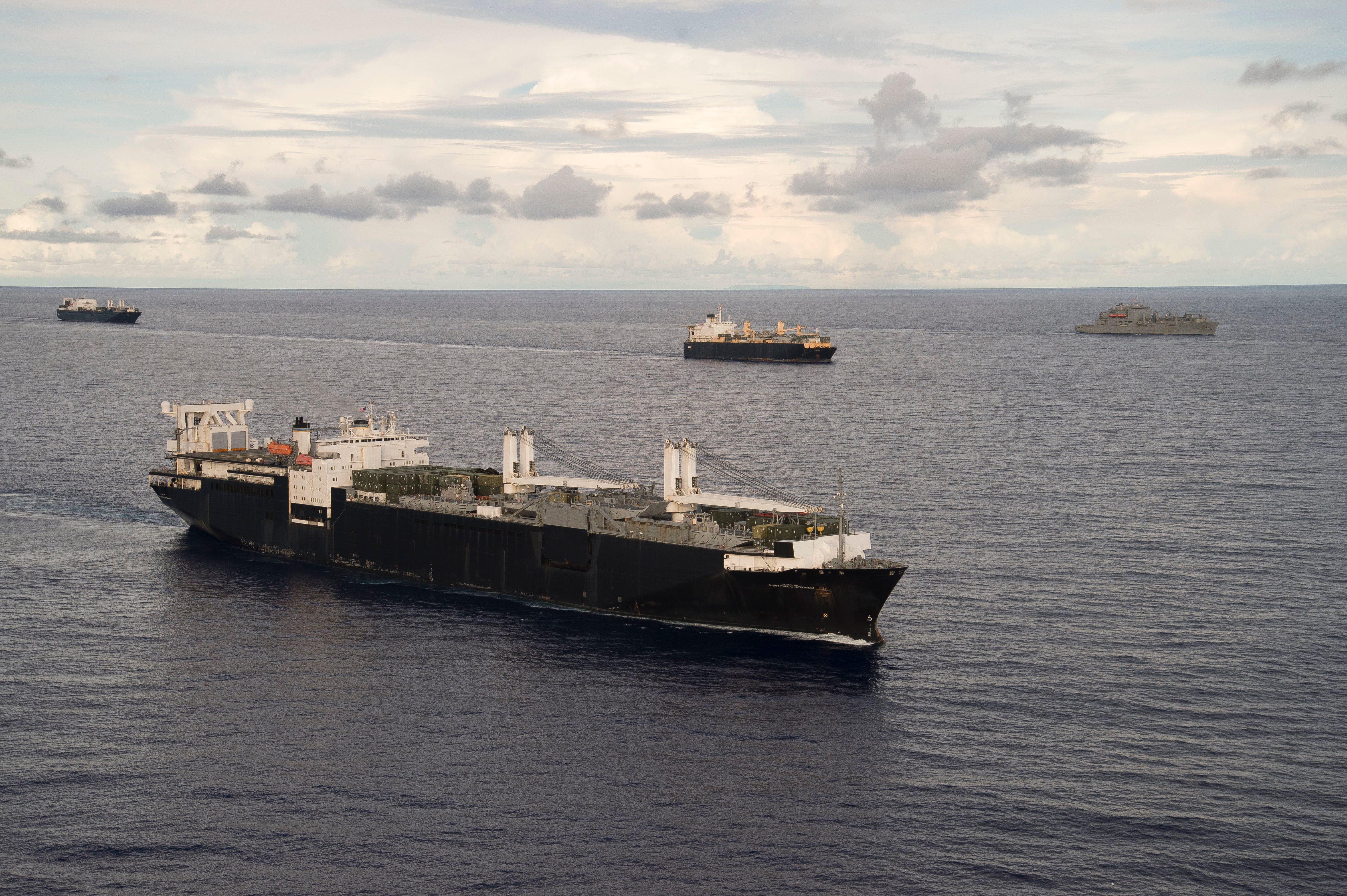 Maritime Prepositioning Squadrons (MPSRON) were the answer. As described by our Military Sealift Command: