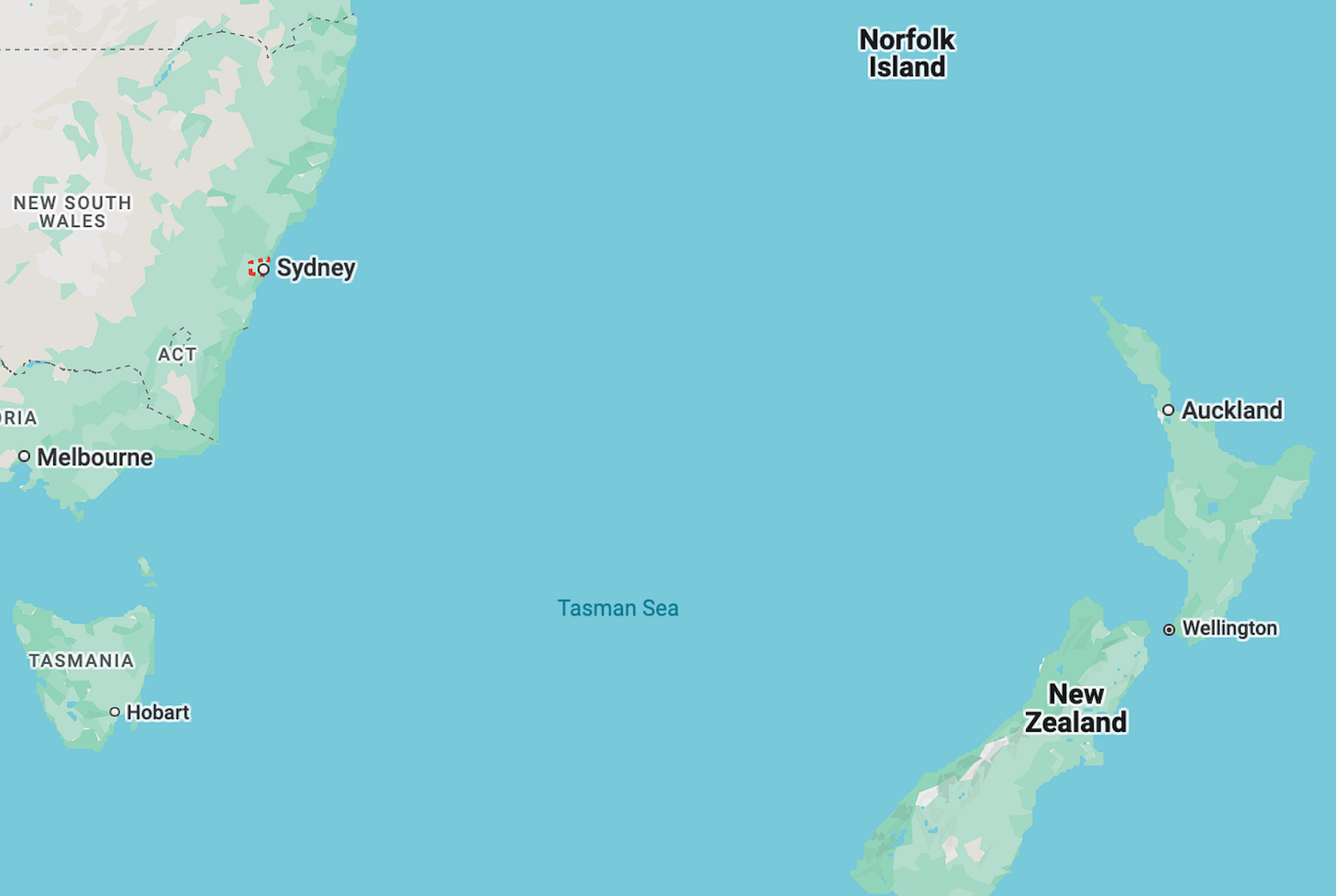 At this point, it might be helpful to point out the geography of the Tasman Sea: