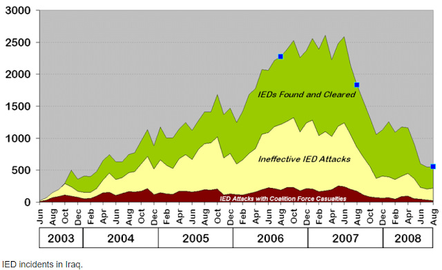 IED came in to AFG from the lessons learned by our enemy in IRQ. The problem manifested itself in IRQ first and then started to decline in 2007. Even at the peak fighting season in 2007 AFG, the IED attacks in IRQ were 10-times higher in IRQ than they were in AFG. The IRQ commander was very jealous of his assets – as he was with his ISR assets, through 2008 in case he needed them.