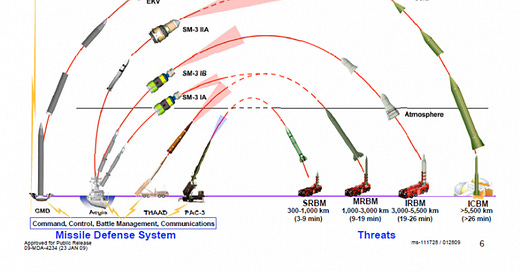 To start with, our most flexible and capable anti-ballistic missile (ABM) system is the Aegis enabled SM-3 family. Some versions of the SM-2 and the SM-6 have some ballistic missile capability, but nothing like SM-3 or even the Army’s THAAD that we’ll get to in a bit.