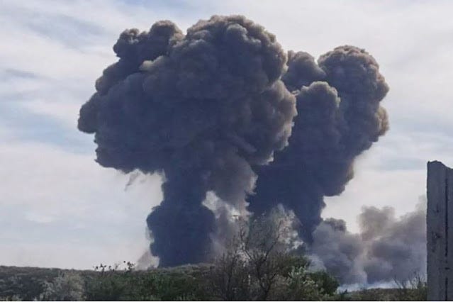 Videos circulating on social media purported to show large explosions at a military airfield in the Saki district of Crimea, a disputed peninsula annexed by Russian forces in 2014.