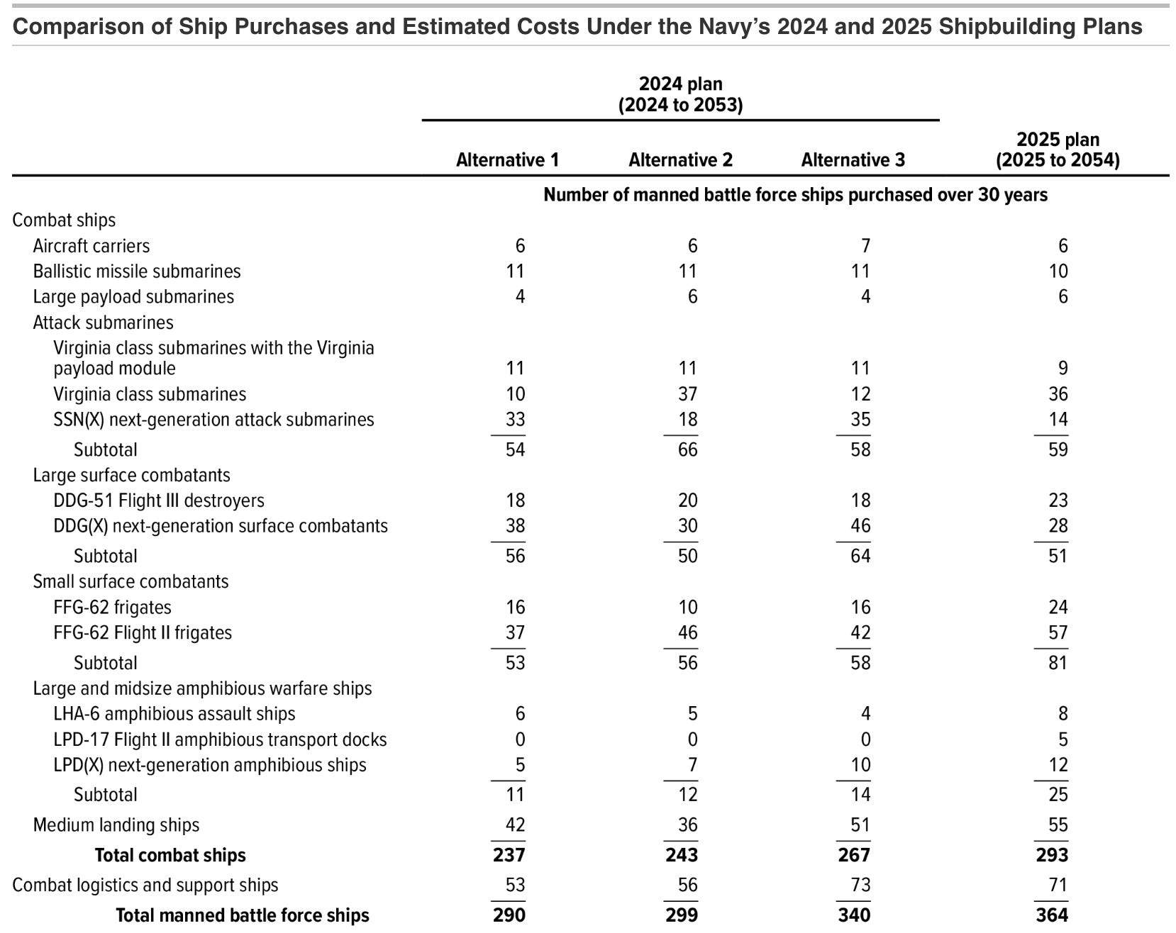 Currently, many Navy shipbuilding programs are experiencing schedule delays and cost growth. In early 2024, the Navy conducted a shipbuilding review that showed many programs were behind schedule. The review specifically highlighted the following ships, which have been delayed by varying amounts: