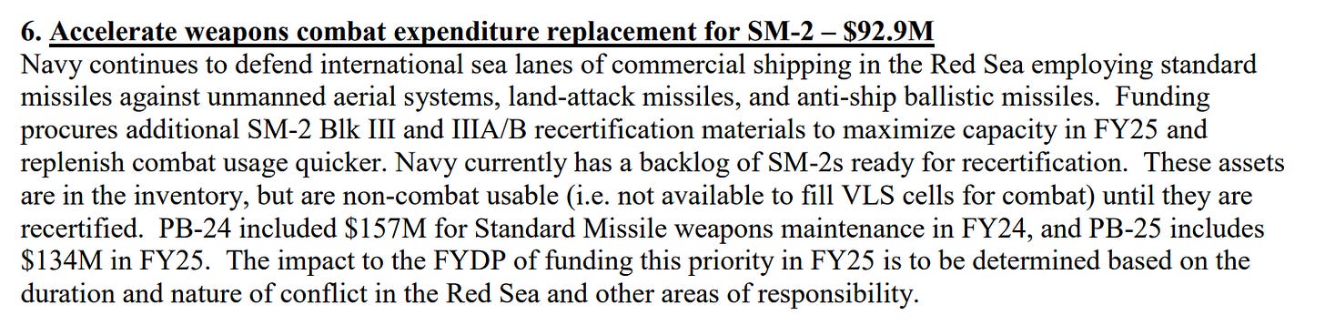 So, We're Restocking the Standard Missiles We're Expending in the Red Sea, Right?