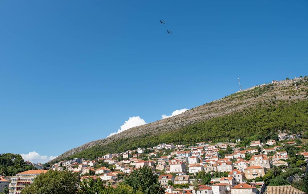 In addition to the walled Croatian tourist resort of Dubrovnik, the aircraft flew over the government headquarters in Skopje, North Macedonia, the downtown Skanderbeg Square in the Albanian capital, Tirana, and up the Adriatic coast of Montenegro.