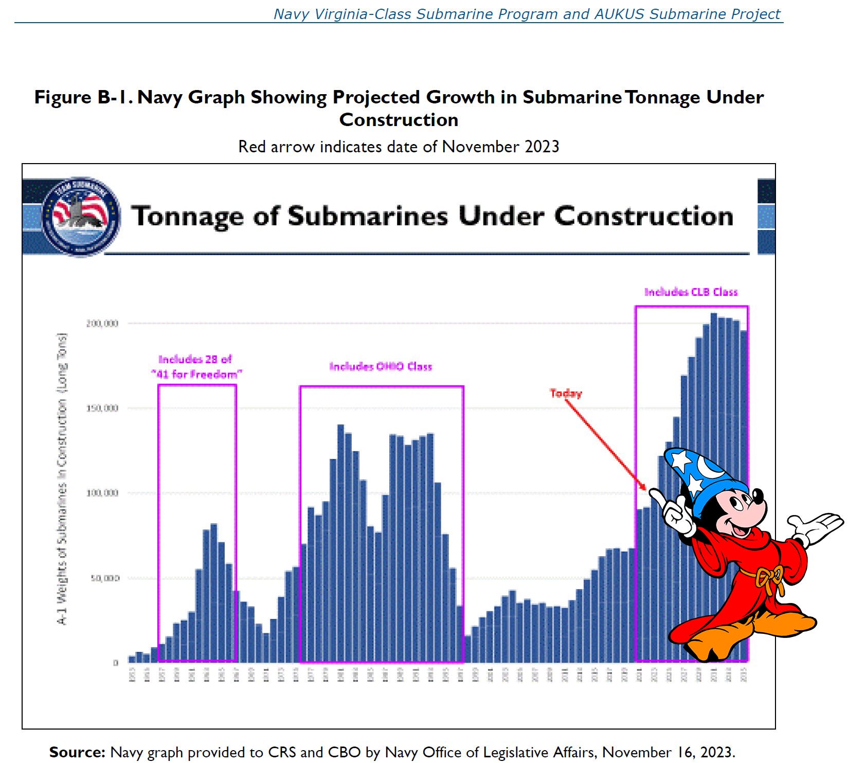 Either way, you call it what you want after viewing what the US Navy sent to the Congressional Budget Office that includes the below graph from the June 12, 2024, Navy Virginia-Class Submarine Program and AUKUS Submarine (Pillar 1) Project: Background and Issues for Congress, as pointed out by our friend at SubBrief … and I’m using his modification to the graph as it is … appropriate.