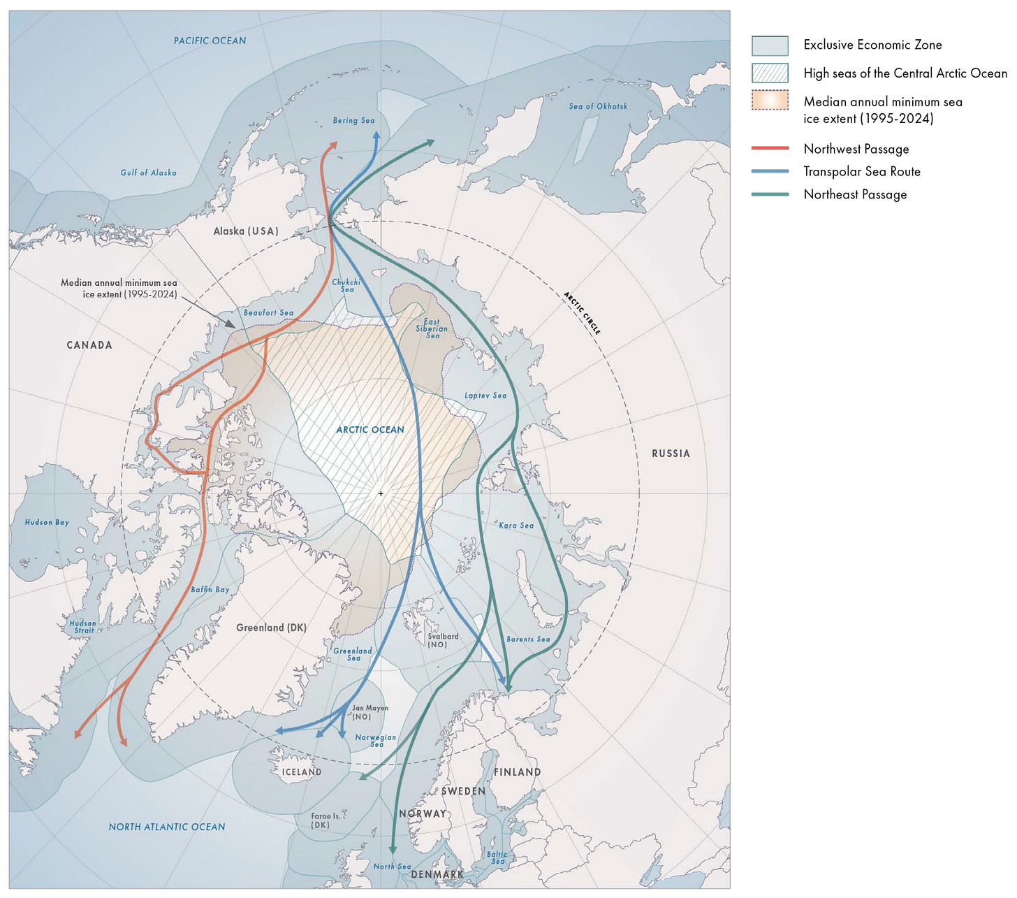 As access to the Arctic increases, threats emerge that compel investments by Arctic states to protect their interests in the region. Historically, U.S. military and security efforts have focused on the North American Arctic because of Alaska’s interconnection with economic activity in the Bering Sea, as well as air and subsurface threats in the region. National defense threats to European Arctic states and their investments are primarily driven by their proximity to Russia. The accession of Sweden and Finland to the North Atlantic Treaty Organization (NATO) has multiplied the obligations of NATO Arctic states in the event of conflict. Moreover, the U.S. Department of Defense sees China as a potentially destabilizing force in the region.