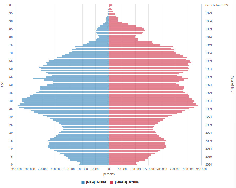 Demographics: Russia is four times larger than Ukraine. They both have living-dead demographics. Russia’s is horrible, but Ukraine’s is worse. While both will enjoy about six years of increasing numbers of 18 year old men coming into fighting age, Russia can still generate 3-4 times more. In the long run, Ukraine especially simply decided not to have children. No modern nation has ever seen such a challenge existing at the same time it needed to grow in power. Both are running out of fighting men, but Ukraine will run out first.