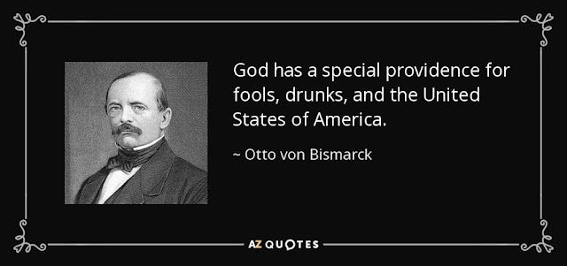 You know the Americans, citizens of that mongrel nation whose gene pool is full of religious zealots, failed revolutionaries, slaves, economic refugees, grasping second sons, criminals, and their descendants – spoiled with a continent overflowing with food, water, minerals, forests and open land they don’t even appreciate.