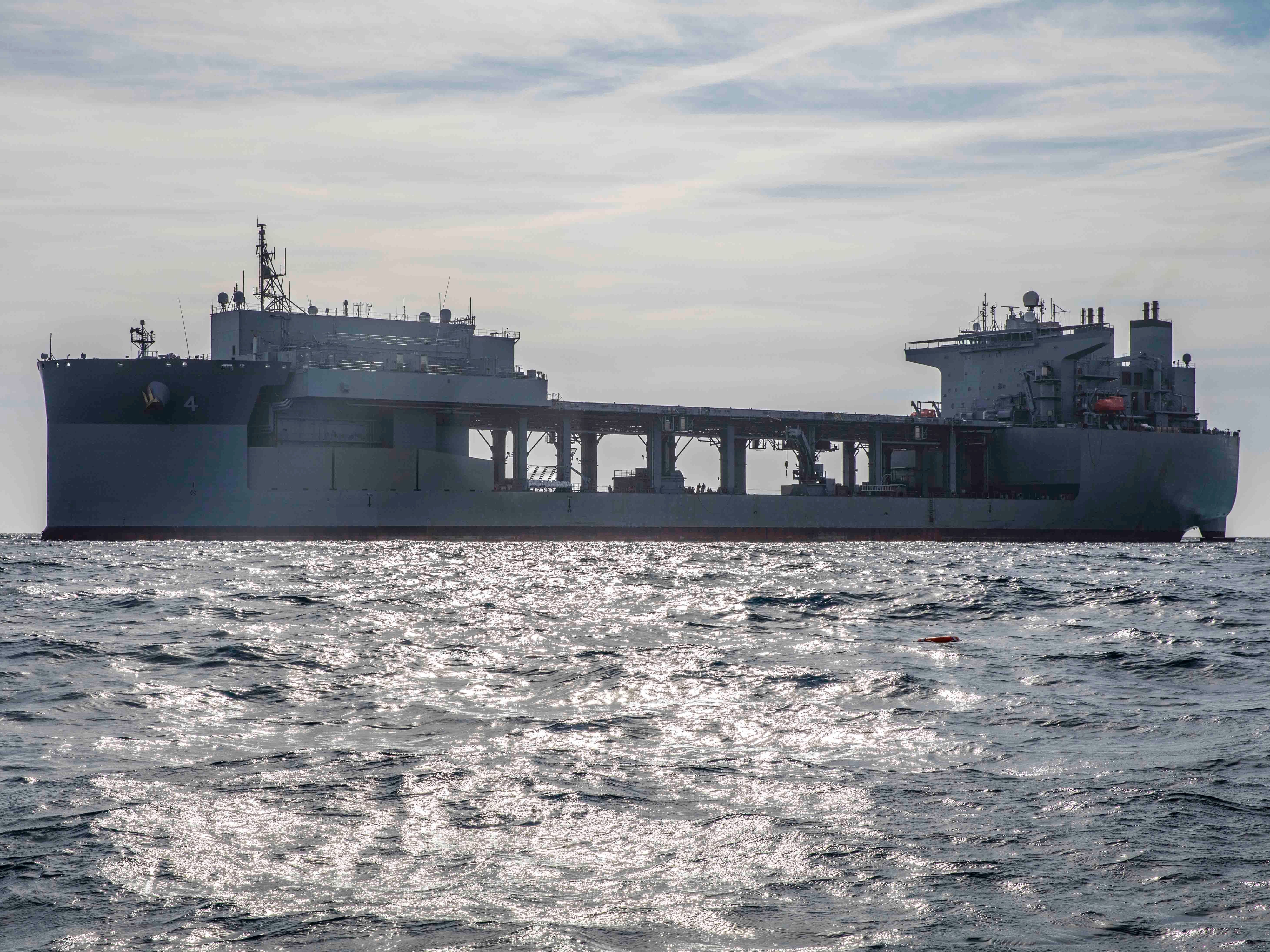 The ships include two replenishment ships, one fleet oiler, a dozen Spearhead-class Expeditionary Fast Transports and two forward-deployed Navy expeditionary sea bases – the USS Lewis Puller, based in Bahrain and the USS Herschel "Woody" Williams, based in Souda Bay, Greece.