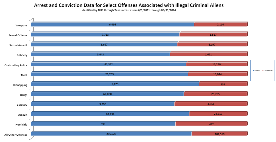 A 2021 Department of Justice report revealed that 64% of federal arrests in 2018 involved noncitizens, despite them comprising only 7% of the population at that time. While the Biden administration fails to provide continuous updates on illegal alien crime data, Texas’ Department of Public Safety maintains a running database of such incidents. Other states should follow suit.