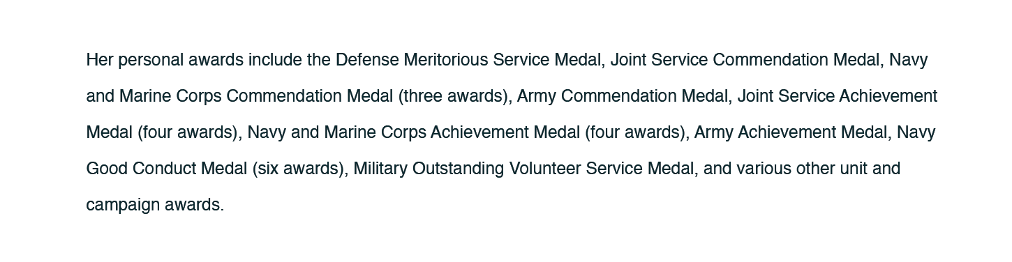 She was sentenced to a reduction in rank to E-7 after the trial and did not respond to requests for comment for this report.