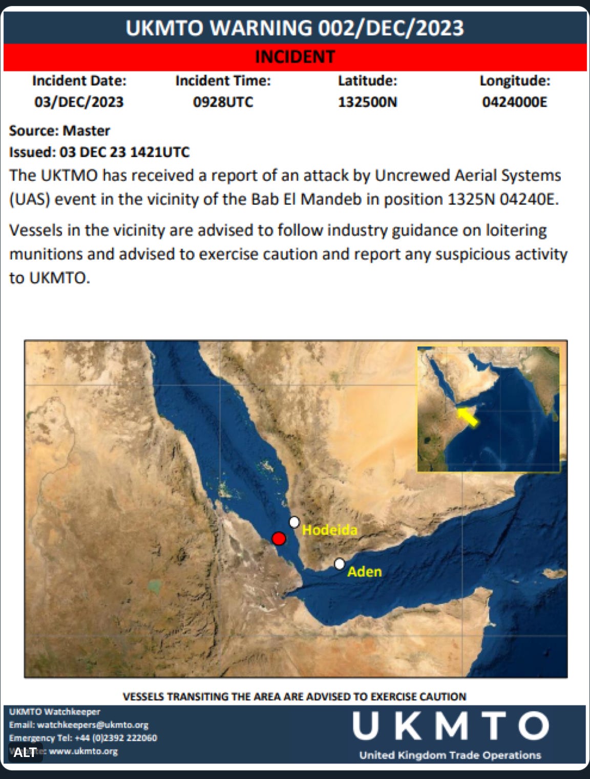 A final note, to keep up with this story, you really should be following the United Kingdom Maritime Trade Operations (UKMTO) on twitter/X @UK_MTO, were the above graphic came from.