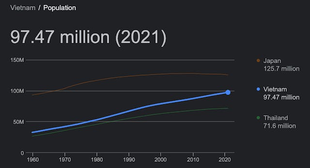 While the PRC, Japan, and Korea are at the starts of a demographic collapse not seen in the modern era - or any era for that matter - Vietnam is actually quite healthy;