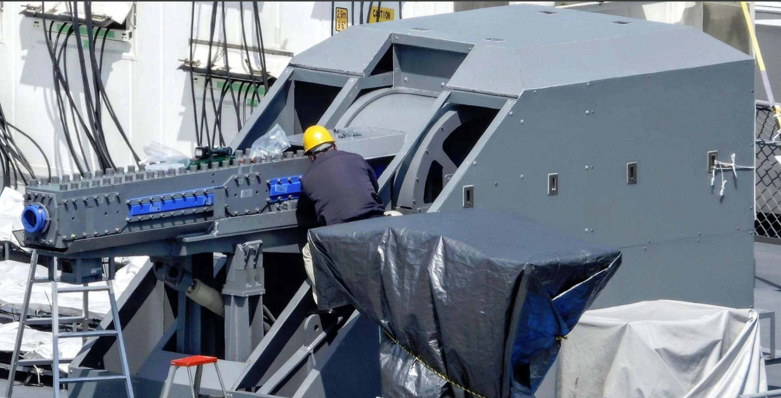 New pictures have emerged showing work being done on the Japan Self-Defense Forces’ prototype electromagnetic railgun currently installed on the test warship JS Asuka. An at-sea test of the weapon in this configuration is expected to come before the end of the month, if it has not occurred already. Japan’s continued developments in this realm stand in notable contrast to the U.S. Navy’s shelving of its promising pursuit of this category of weapons in the early 2020s after major technical hurdles emerged.