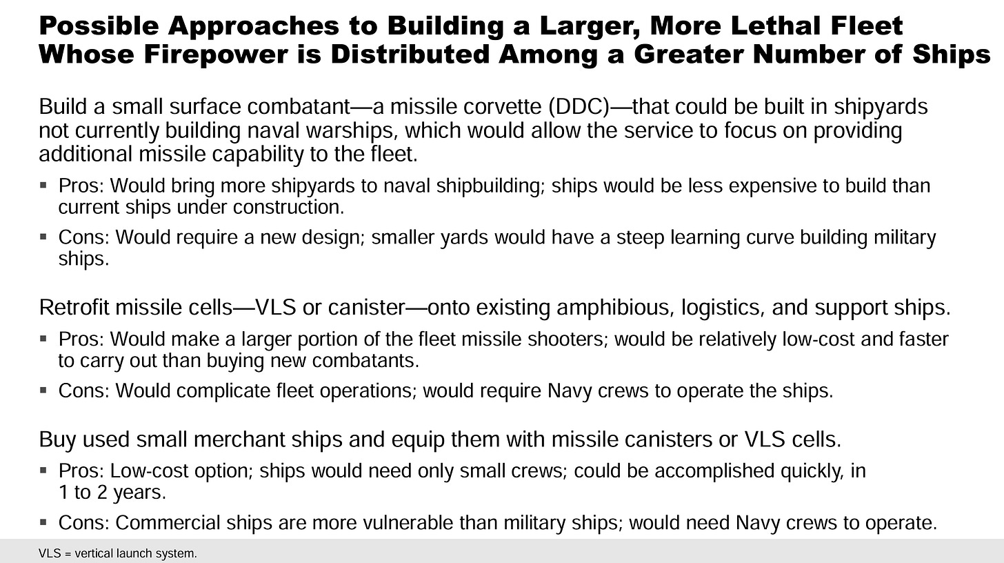 Let’s finish up on a positive note. We know we will most likely be under 300 ships until the crack of doom. We also know, especially with the decommissioning of the SSGN from 2026-28, that our VLS inventory is going to significantly shrink and not grow. Those VLS cells are what we use to both project power and defend our fleet. What can be done?
