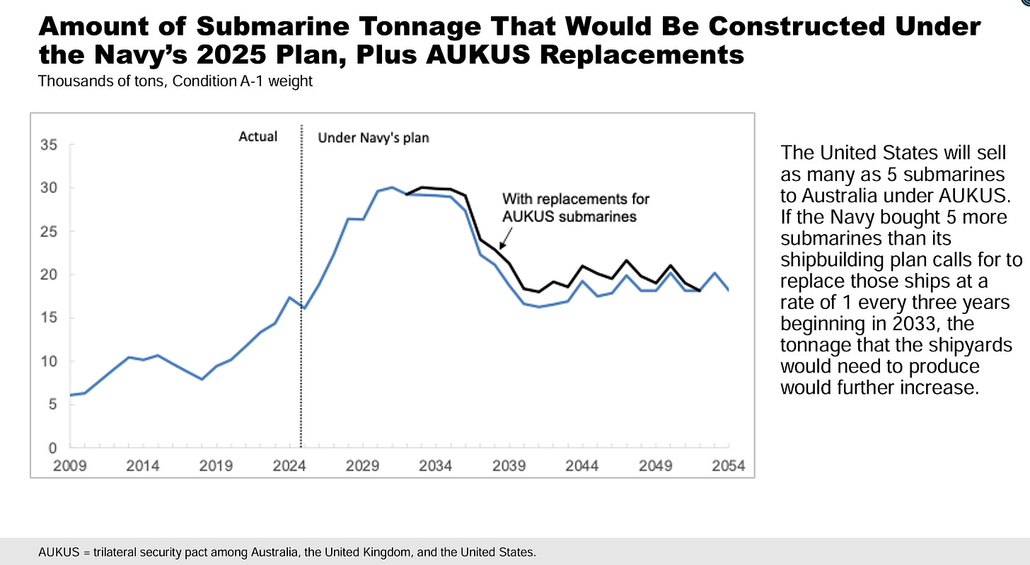 Here and on Midrats, for years we have discussed the threadbare condition of our submarine industrial and repair base. Starved for decades, we cannot properly maintain the submarines we have right now, and the stress of the Columbia SSBN build straining the entire system. We all know where we are in 2024. How do we meet the peak of this graph?