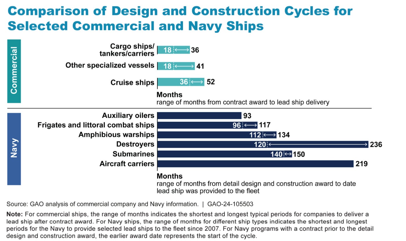 I can already hear people getting defensive about “apples and oranges” when it comes to commercial ships and warships … but the inclusion of auxillary oilers in the above gives you a better benchmark to the dysfunction.