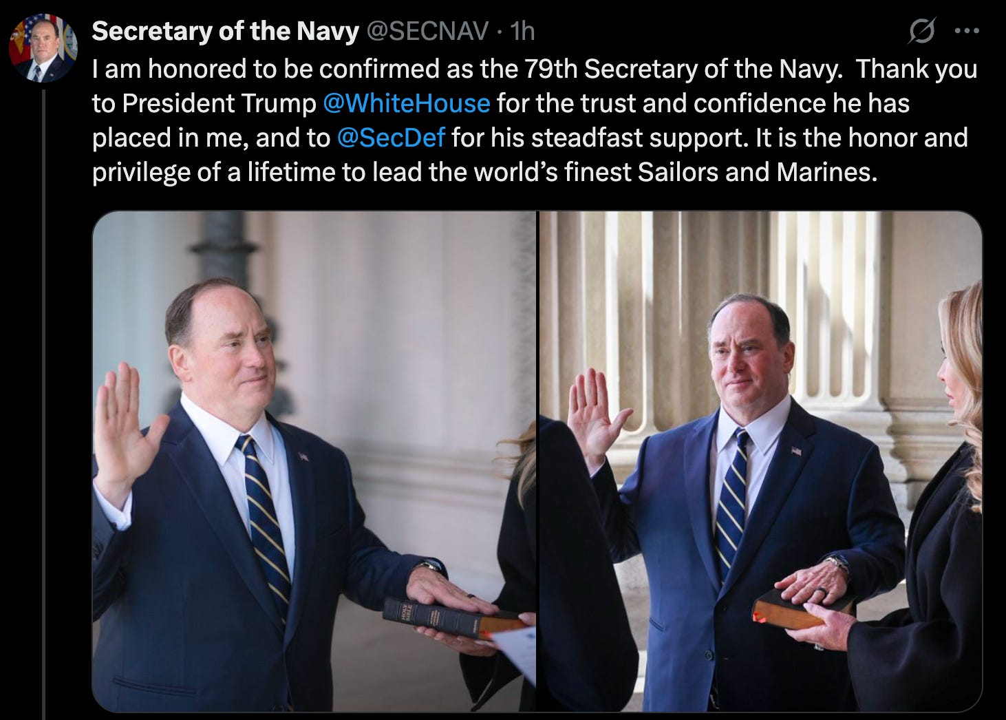 Right now, SECNAV Phelen has an Army guy as his boss. I think he would need a proper Sailor…but perhaps in a parallel universe.
